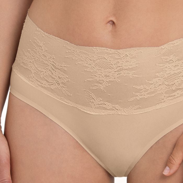 Discover seductive comfort: the Essential Lace High Waist impresses with its feminine, floral lace band and continues seamlessly to the back. Combine it with different styles for a perfect set. The elasticated lace and super-soft multi-stretch fabric fit like a second skin without slipping or pinching – for invisible comfort all day long.