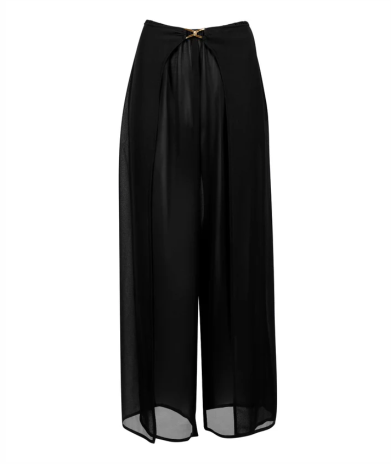 Made from sensual, floaty see-through voile, the Beach Walk trousers are light and sexy with slits that subtly show off bare legs with every movement. At the waist, draped fabric held in place by a double gold buckle showcases feminine curves for a thoroughly elegant look.