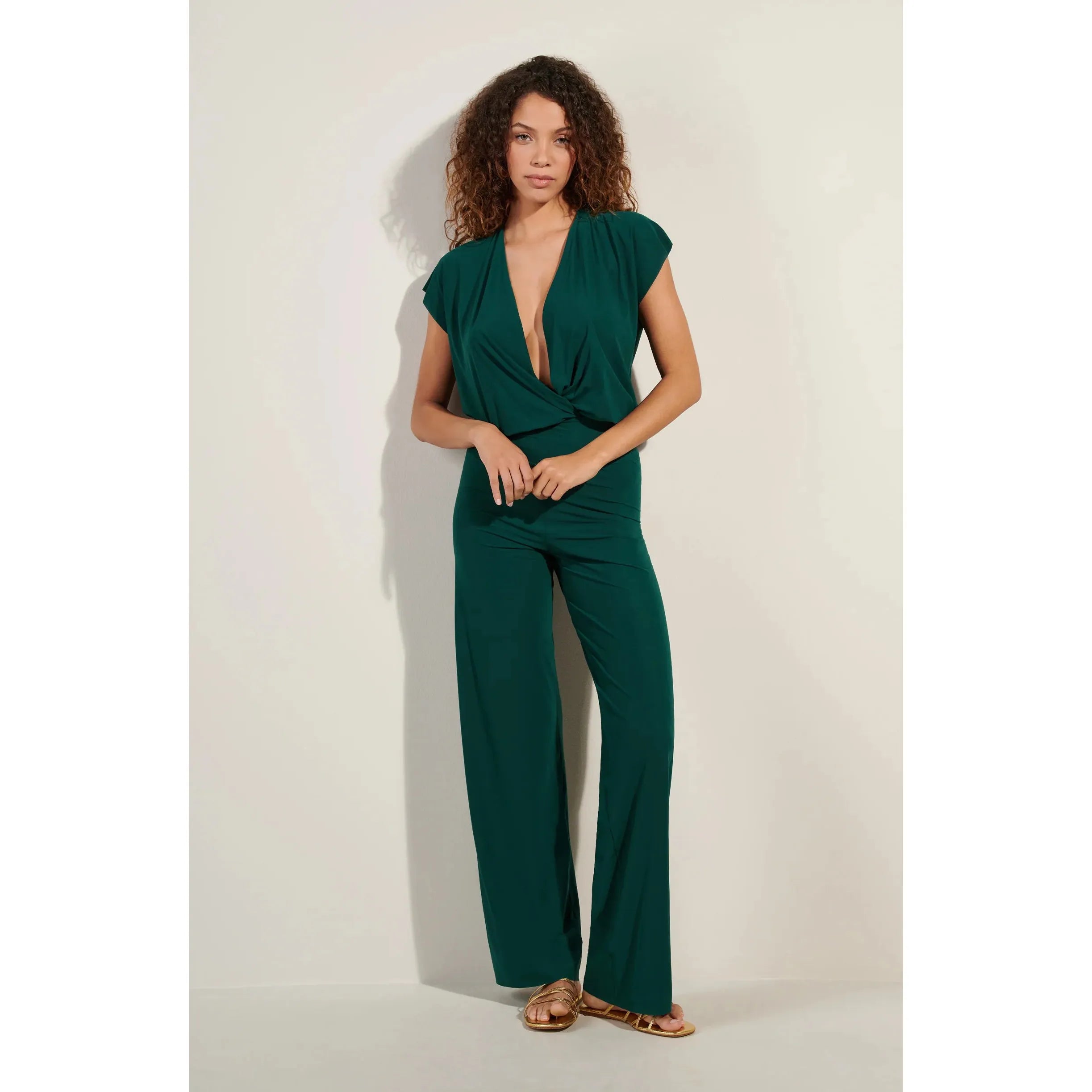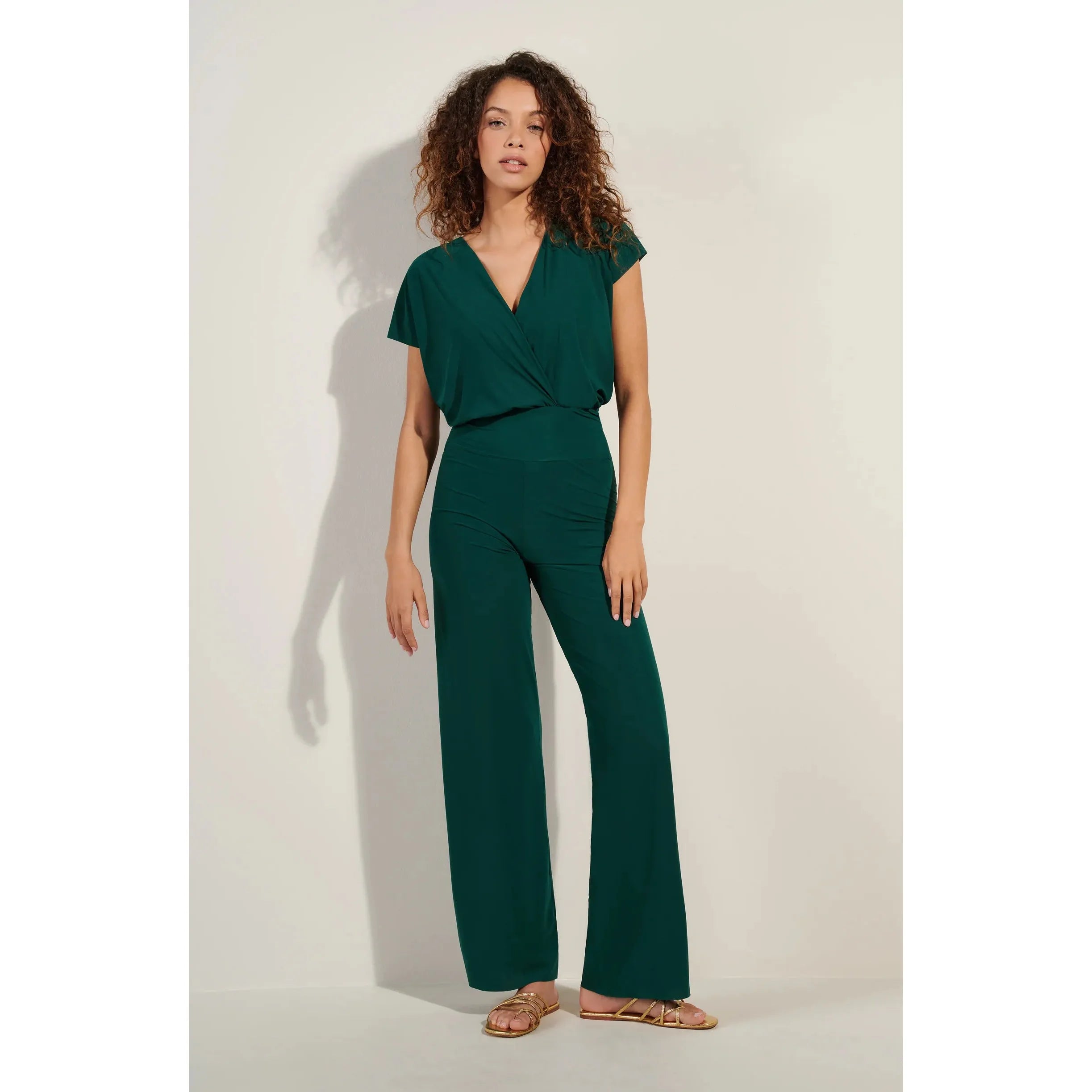 The light voile jumpsuit CODOU gives a graceful and casual silhouette. At the bottom, the flowing trousers wrap you with softness. The loose-fitted top reveals a wide crossed neckline, wrap-top effect, featuring deep front and back V-necklines. Bambou, a timeless colour that is always elegant.