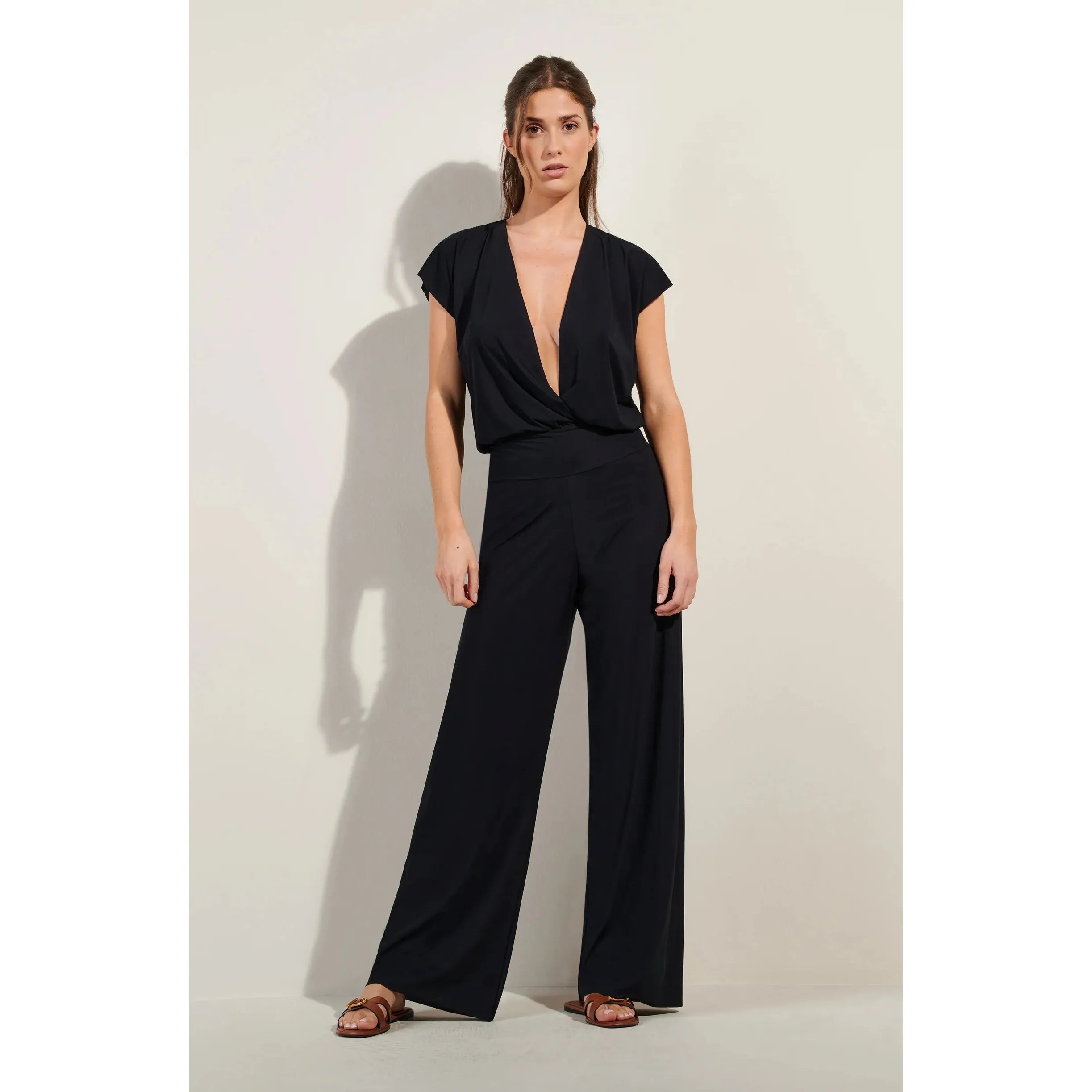 The light voile jumpsuit CODOU gives a graceful and casual silhouette. At the bottom, the flowing trousers wrap you with softness. The loose-fitted top reveals a wide crossed neckline, wrap-top effect, featuring deep front and back V-necklines.