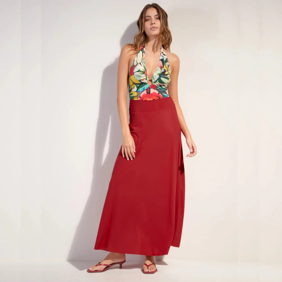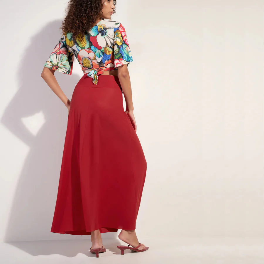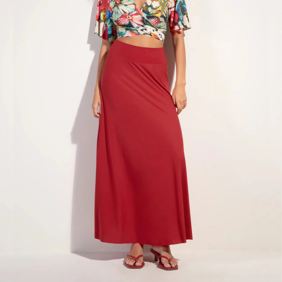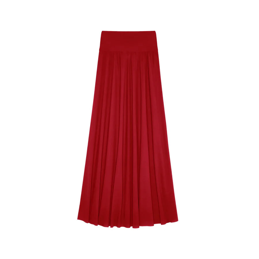 Flared skirt or strapless dress, JAYA can be worn according to your wishes and outings. Its flowing fabric is boosted with a wide elastic waistband to elegantly fit all body types. In stunning Garance - a bold red, a scarlet with a seductive hue.