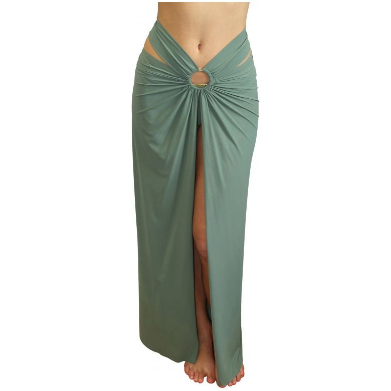 Adorned with a jewel loop, the pareo-skirt PETRA elegantly changes styles. As a skirt, its straps are beautifully tied around the waist. They are tied around the shoulders for a strapless beach dress for a very feminine look. Almond, a light and soft green colour.
