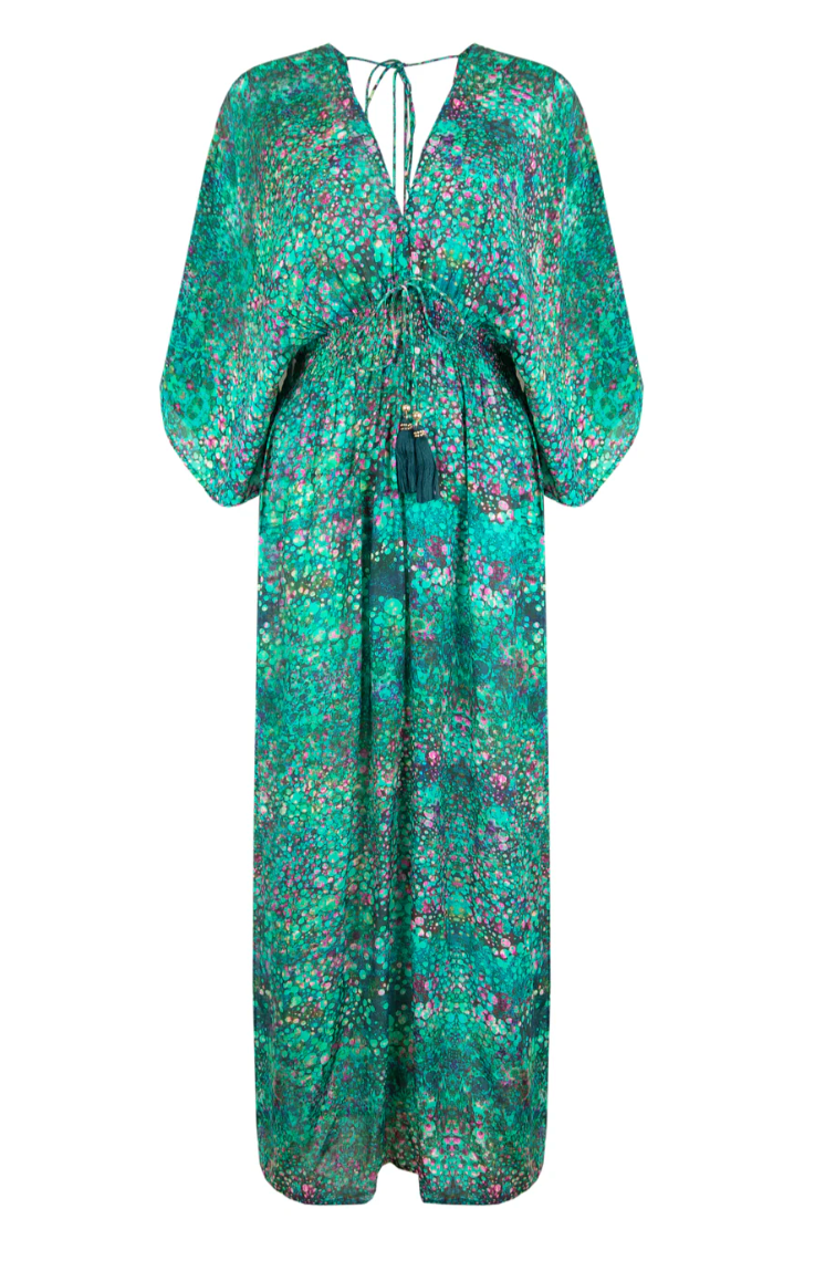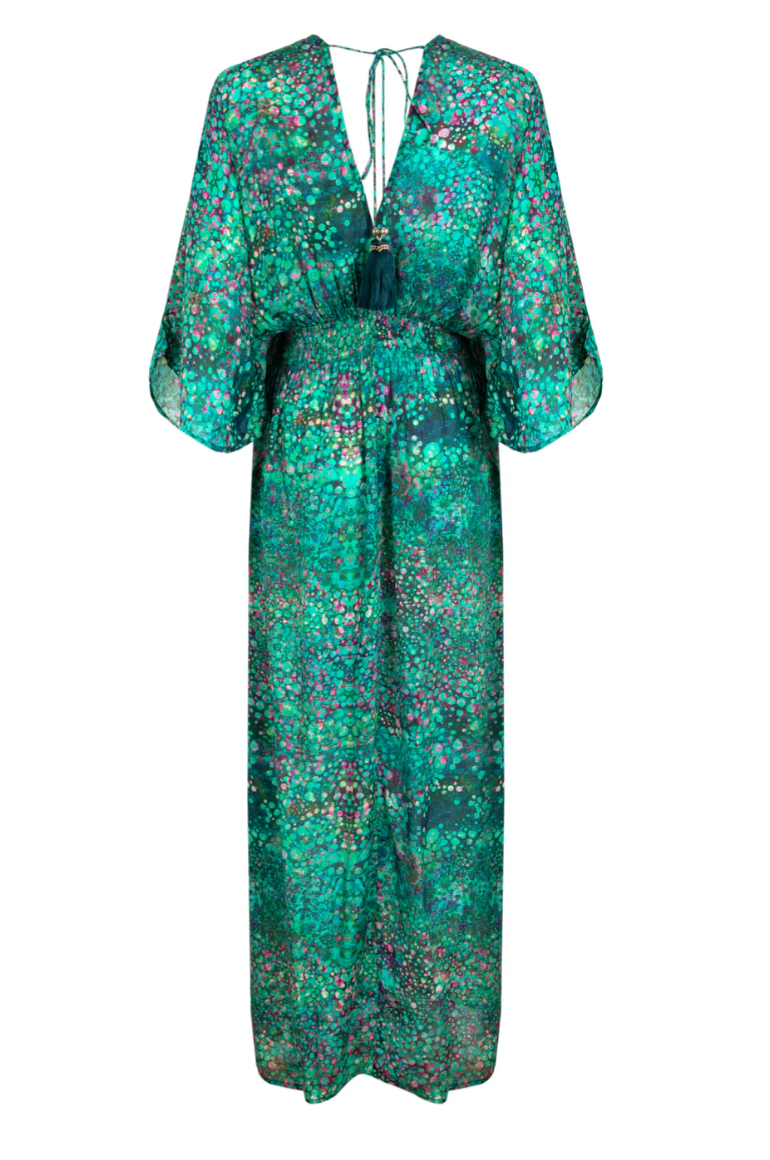 The Capri Kimono dress is the elegant silhouette we all need for our next summer getaway. Made from a beautiful viscose crepe, this maxi dress is light, summery, and necessary! The perfect cover up while lounging by the pool or add a sandal/wedge, along with some statement earrings and you’re evening ready!