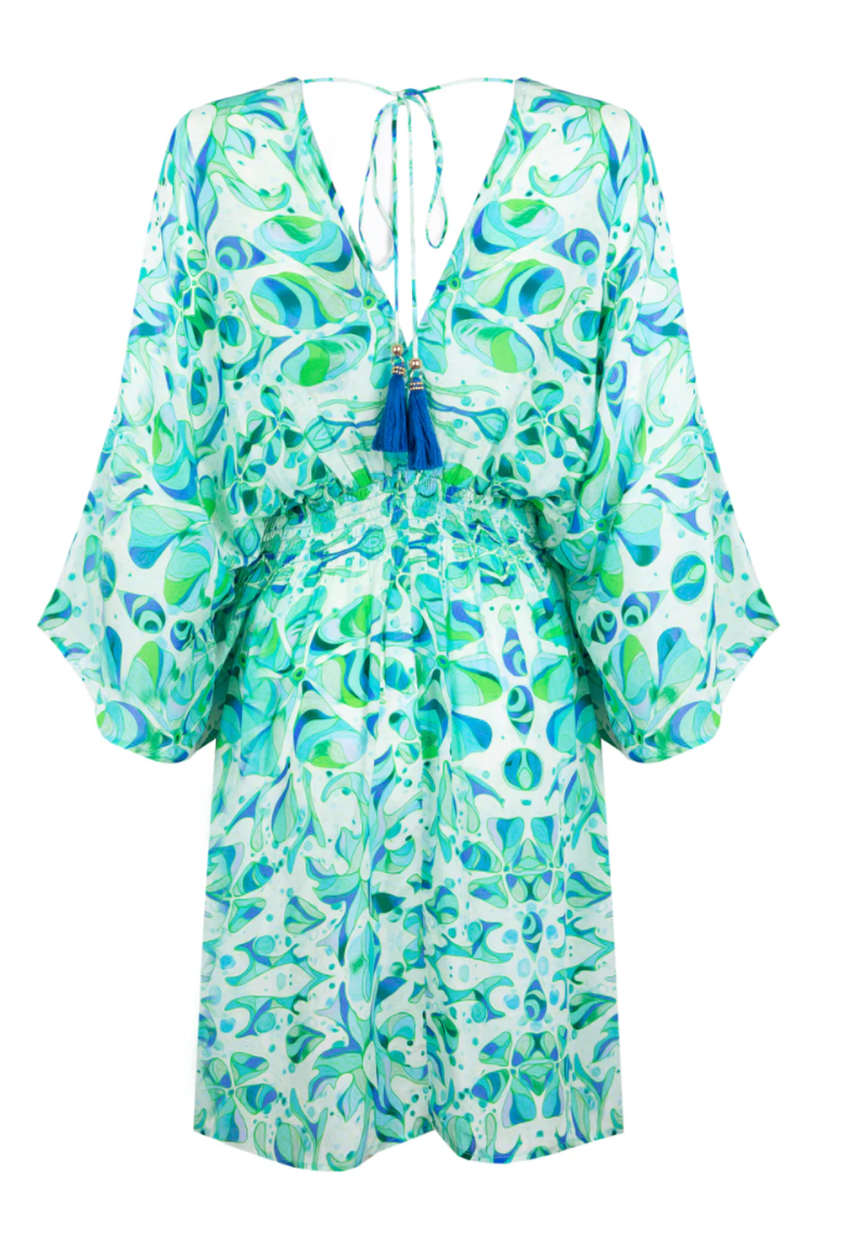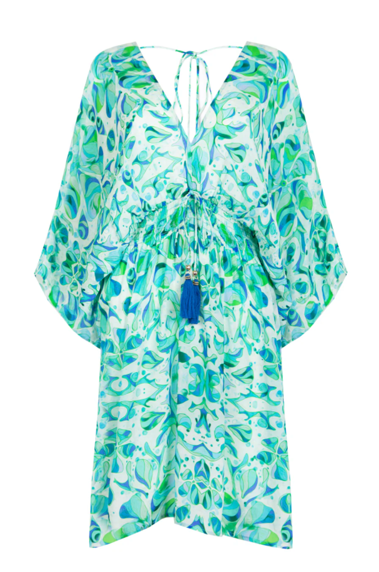 The Mini Capri Kimono dress is a mini version of our popular Maxi Capri Kimono. Perfect for throwing on over a bikini, this dress can be easily dressed up or down for any occasion. Made from a beautiful viscose crepe, this mini dress is light, summery, and makes the perfect holiday companion!