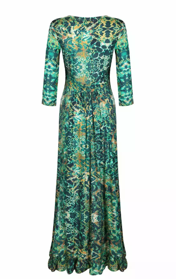 Sophia Alexia Ladies Ruffle Wrap Dress - Emerald Leopard