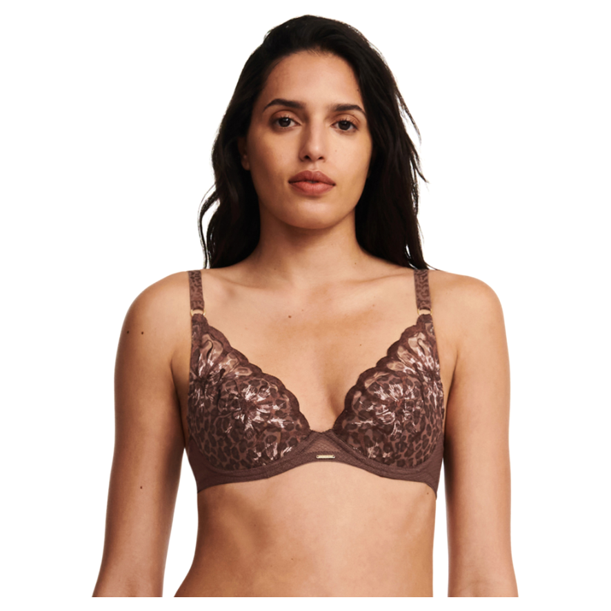Chantelle Ladies Fleurs Plunge T-Shirt Bra - Leopard