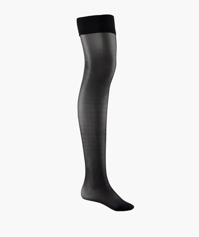 Inspired by the 50s, these stockings bring a decidedly vintage vibe to any outfit. With their visible seam along the leg and transparent 30-denier voile that allows sensual bare skin to show through, they are comfortable and sexy for a sultry figure.