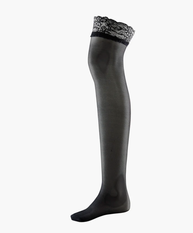 Sexy and comfortable, to wear with or without a suspender belt, the Aubade line of silicone-top hold-up stockings are an absolute classic. With their refined, lightweight floral jacquard lace that matches all the lingerie sets and their elegant, timeless black colour, the Aubade stockings bring elegance to your legs and beautifully show off your skin beneath 30-denier sheer voile.