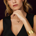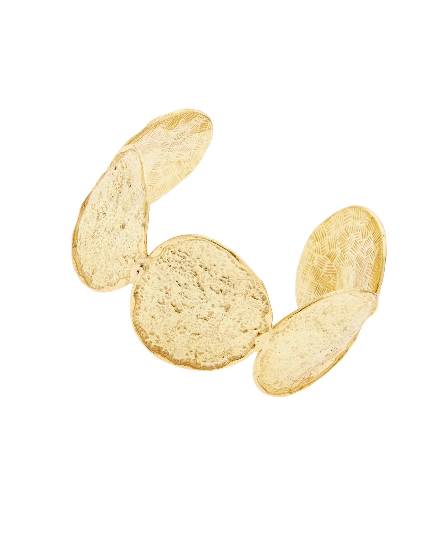 The lovely molten effect coins on the Scarlet cuff sculpt perfectly around the wrist. Worn on its own or with other arm candy this cuff is a wardrobe staple and one that will never go out of fashion.