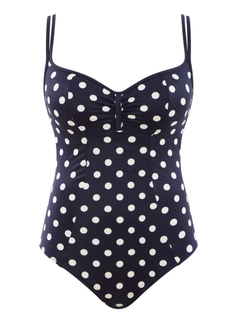 Panache Ladies Anya Riva Spot Balcony Swimsuit - Navy / Vanilla