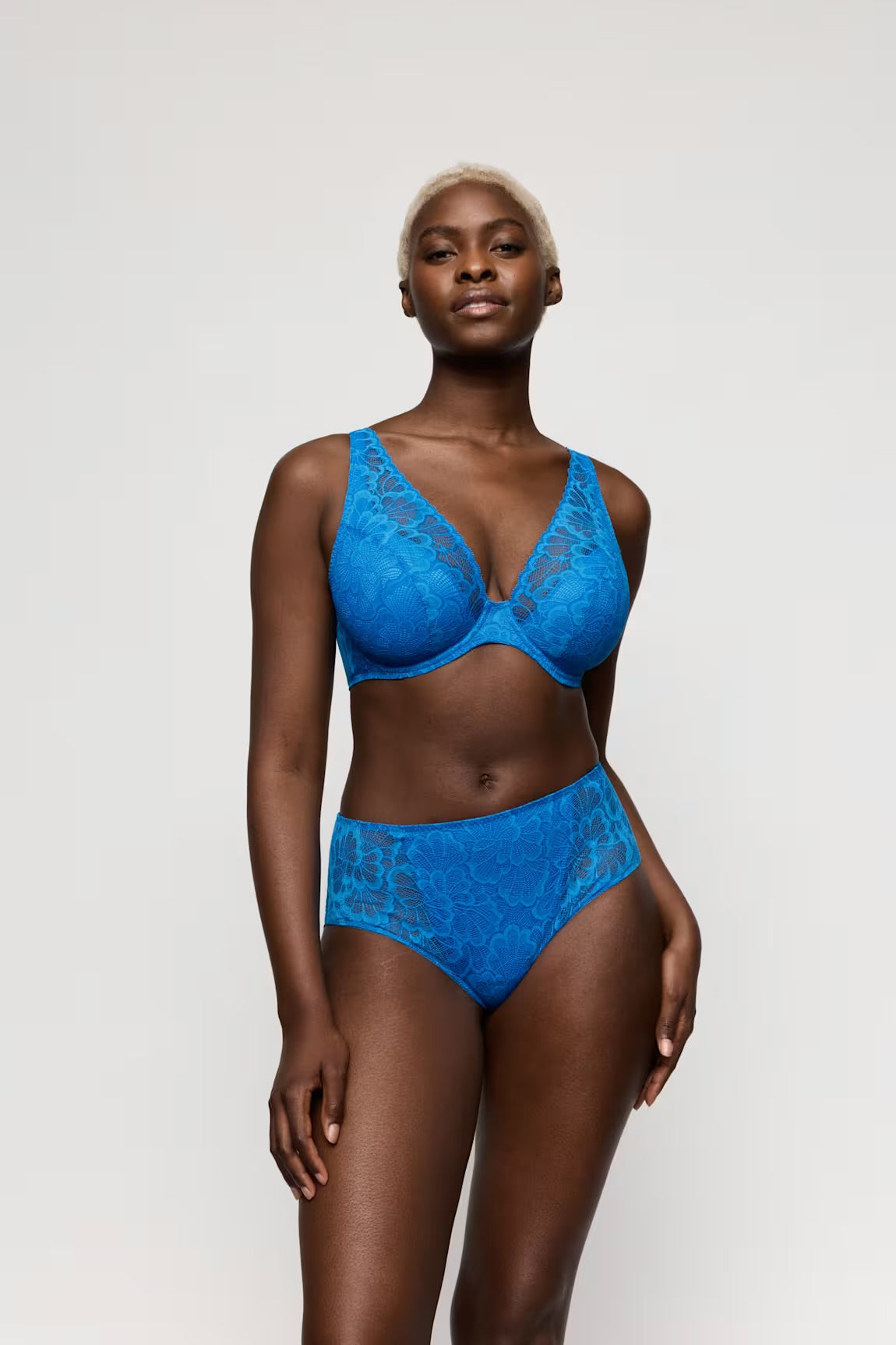 Comfy plunge bra with a sexy V-neckline. Fashionable bright blue.