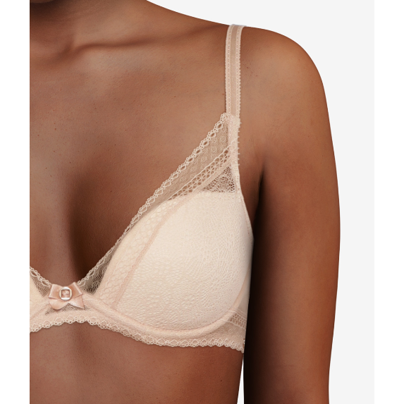 A modern T-shirt bra with a decorative graphic lace for enhanced modernity. Sexy plunging effect. Removable padding in small sizes (A and 32B) enhancing the cleavage effect. Fully adjustable straps and brassiere back. Mounted on a base for better lift and support. Plunge effect.