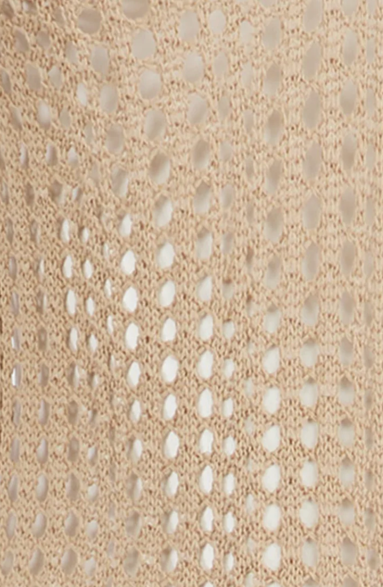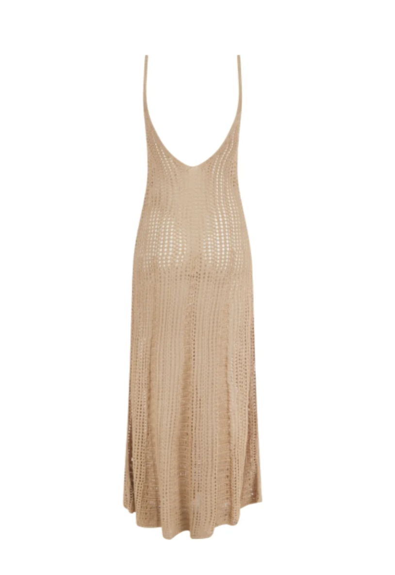 The Quince Maxi, this sleeveless, drop back maxi is made using lattice-like stitches, alternating patterns elongates the skirt. Made using light weight soft Viscose threads.